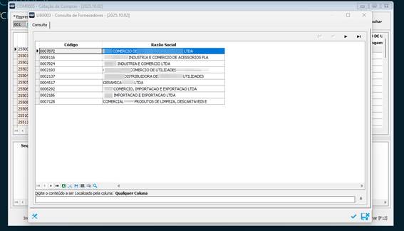Após este será demonstrado opção para selecionar o fornecedor que deseja atualizar os registros com as informações da planilha preenchida. Repita o processo para importar cada um dos fornecedores.